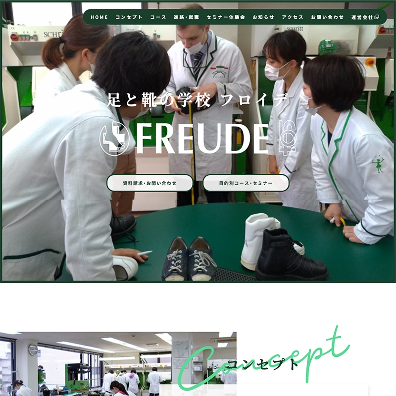 「足にトラブルがある方もない方も、全ての方に履 き心地がよい靴、歩きやすい靴をご提案できる人を育成する」というコンセプトのもと、オートペディシューマイスターの教育カリキュラムに則った靴作りのプロを育成する学校として、アルカ・グループが運営しています。 フロイデは、日本で唯一の本場ドイツの公立靴専門学校の姉妹校です。 ドイツや日本の第一線で活躍する講師陣により、本場のカリキュラムや工具を使った伝統のある技術を学ぶことができる学校です。